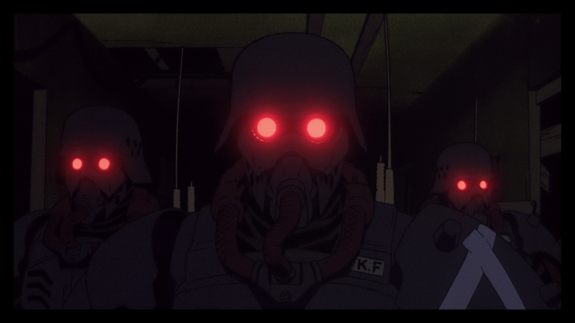 Bu yüzeyselliğine karşı yine de bu kadar ilgi çekici kalabilmesi de daha önce bahsettiğim uyum ile alakalı. Bir trenin camından gözünüzü ayırmadan ilerler gibi makinenin nasıl işlediğini önemsemeden veya fark bile etmeden a noktasından b noktasına getiriyor film izleyeni. Bence çok ilgi çekici ve kendine has bir dünyası var Jin-Rô’nun fakat bu trenin yolda durup camdan baktığım şehirleri gezebileceğim ve onları daha da derinleştirebileceğim bir durağı yok. Çizimlerde bile bu yüzeysel kalışı görmek çok kolaydı benim açımdan, mesela film boyunca insanların yüzlerini birbirlerinden ayırt etmekte çok zorlandım. Çünkü neredeyse hepsi çok hızlı ve tek bir kalıptan çıkmış gibilerdi. Bu tercih de renklerin daha bir önem kazanmasına olanak sağlamış. Genel olarak griye çalan dünyamız kırmızı ve tonlarının etrafında yön alıyor diyebiliriz. Kasktan bakan gözler, patlamalar, kırmızı başlıklar hep anlatıdaki bir farklılığı gösterir gibi kullanılmış. (Bir açıdan askerlerin diğer insanları ve kendilerini nasıl gördüğüne dair bir ayrıntı da olabilir. Asker için bireysellik yoktur her asker birdir sadece apoletler farklıdır. Düşmanın yüzü yoktur sadece düşman olduğunu gösteren bir belirteci bir üniforması vardır. Siviller ise hem askere hem düşmana benzerler ta ki taraflarını gösterene kadar.)